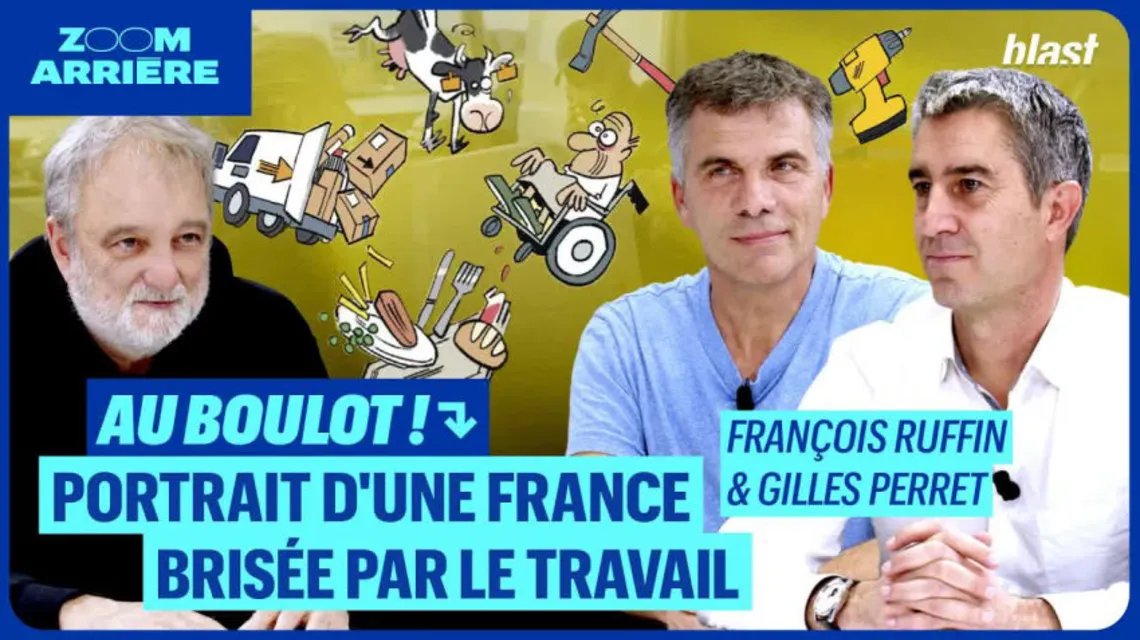 « Au Boulot ! » le film de François Ruffin et Gilles Perret sort cette semaine, l’occasion d’inviter à Blast ses deux réalisateurs. Le film – intéressant dans sa plongée d’une France au travail- repose sur la tentative d’embrigadement d’une jeune femme de droite, bourgeoise insupportable et pleine de préjugés vers des contrées plus riantes et humanistes. On suit donc « Sarah et les chics types », le voyage et l’amitié naissante de Ruffin le rouge et de Sarah la blonde, filmé par Gilles Perret le savoyard. Puisqu’on est dans les clichés, usons-en. Le film – qui sort dans 140 salles- part de cette envie très aguicheuse de voir une chroniqueuse intoxiquée par la doxa libérale, portant bijoux de luxe et sourire siglé CNews, expédiée dans une France au boulot. Une France d’ouvriers, de travailleurs jetables, de clients des Restos du cœur. Une France sur laquelle Sarah Saldmann crache (et c’est peu de le dire) à longueur de soirée sur les médias de Bolloré. Le duo Ruffin-Perret l’emmène pour un tour qui commence bien et finit en queue de poisson. Sarah disparait soudainement des radars sans qu’on sache vraiment si la greffe a pris. Mais ce n’est pas si grave, on a passé 90 minutes au cinéma à voir un film sur des français d’habitude invisibles. Comment est né ce film ? Qu’est devenue sa protagoniste ? Comment le député Ruffin concilie-t-il sa vie de politique avec celle de journaliste ? De quoi ce documentaire sorti dans 140 salles est-il le nom ? Cette conversation entre amis tente d’y répondre sans complaisance. On vit dans un monde de bruts, de faux prophètes, d’oligarques et de menteurs. Autant chercher un peu d’humour et de douceur…
